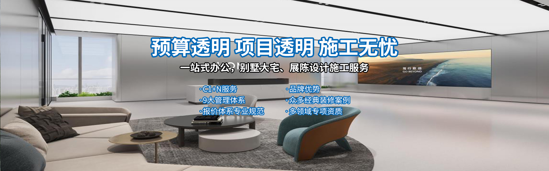 公司优势:1+N服务,品牌优势,9大管理体系,众多经典装修案例,报价体系专业规范,多领域专项资质